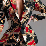 Atrage atenția în Amelia™ – Set Sacou Elegant, o ținută îndrăzneață și la modă, formată din două piese, destinată femeilor care conduc cu stil. Acest set combină un sacou scurt croitorit, mulat, cu pantaloni cu talie înaltă eleganți, care urmează formele corpului—o fuziune perfectă între rafinamentul business și un aer modern.