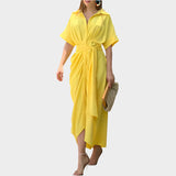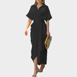 Oferă o combinație unicat între cămașa clasică și silueta elegantă. Cu modelul său verde jucăuș, nasturii de-a lungul lungimii și cureaua care accentuează talia, este perfect pentru look-uri de vară care ies în evidență.