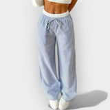 Moderne și elegant de lejer, acești pantaloni cu picioare largi și dungi subtile combină confortul cu un stil unic. Perfecti pentru plimbări în oraș sau ieșiri relaxate cu personalitate, oferă libertate de mișcare și o textură distinctivă care iese în evidență.