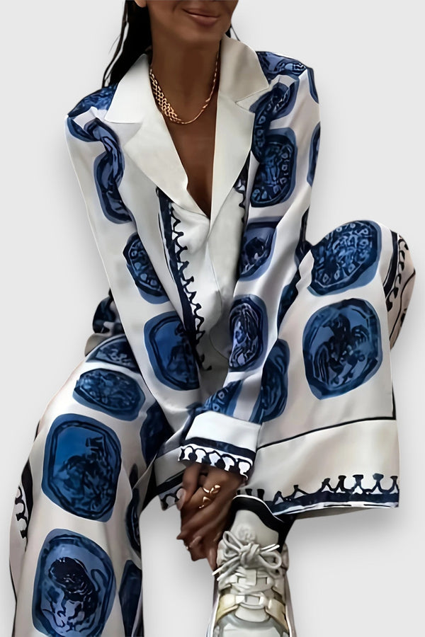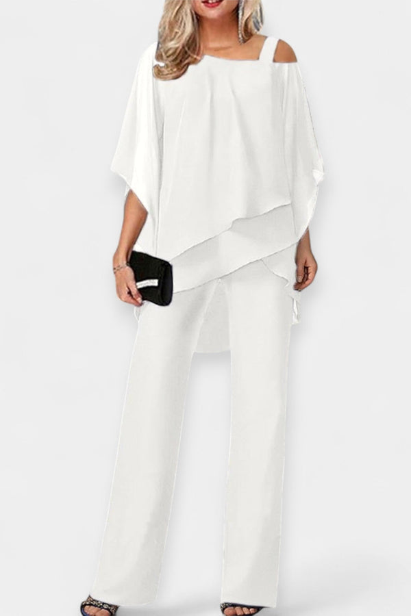 Set cu top plisat cu mâneci scurte și lungime midi neregulată, pantaloni largi cu talie elastică