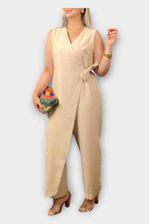 Set de vară cu top fără mâneci și pantaloni cu imprimeu de frunze