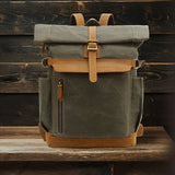 Acest rucsac trendy din pânză și piele este conceput atât pentru bărbați, cât și pentru femei, oferind: